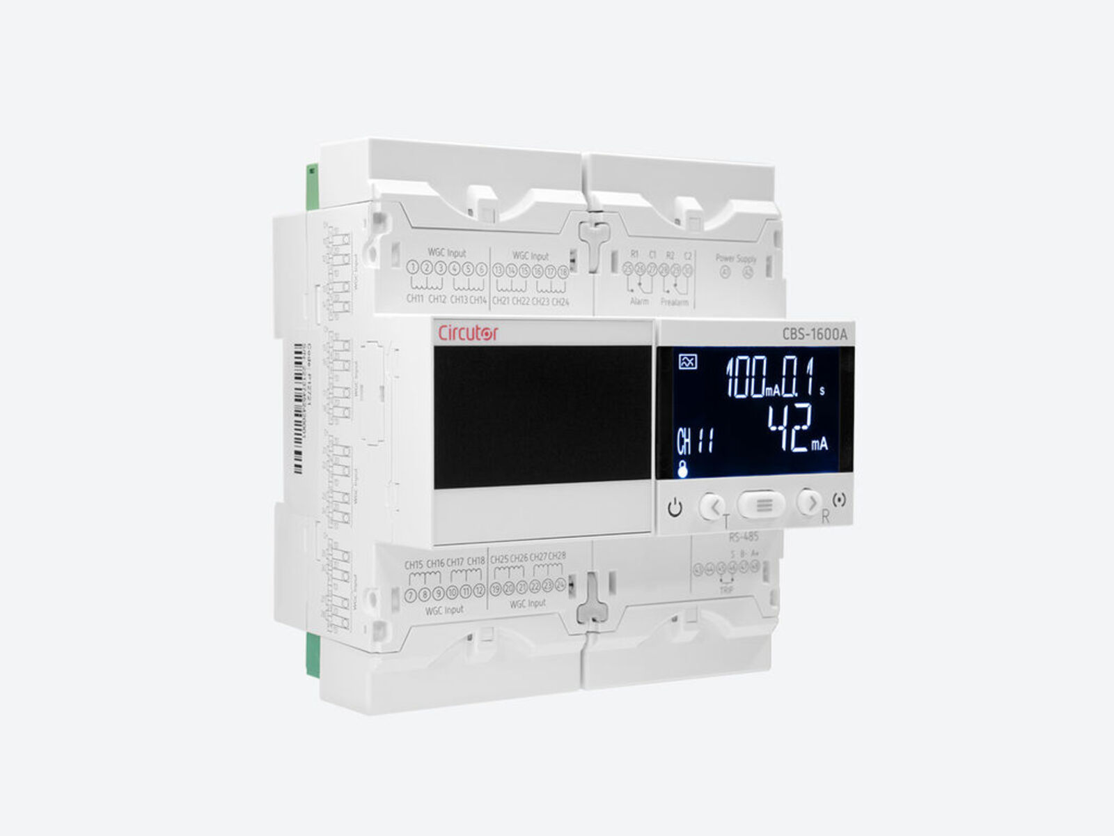 CBS-1600A är en jordfelsströmövervakningsenhet utformad för att ansluta upp till 16 typ-A-kanaler genom transformatorer i WGC-serien. Den har en display för att övervaka alla 16 kanaler och inkluderar 2 reläer för larm och förlarm, tillsammans med RS-485 kommunikationsmöjligheter.