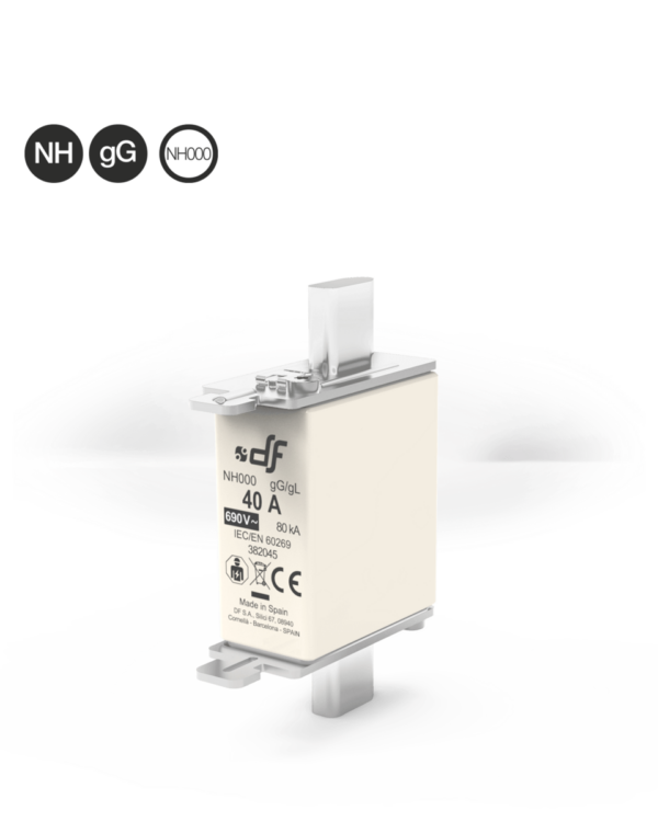 Tillverkad med keramisk kropp med hög motståndskraft mot inre tryck och termisk stöt, som tillåter en hög brottkapacitet. Knivkontakter är gjorda av silverpläterad koppar eller mässing.