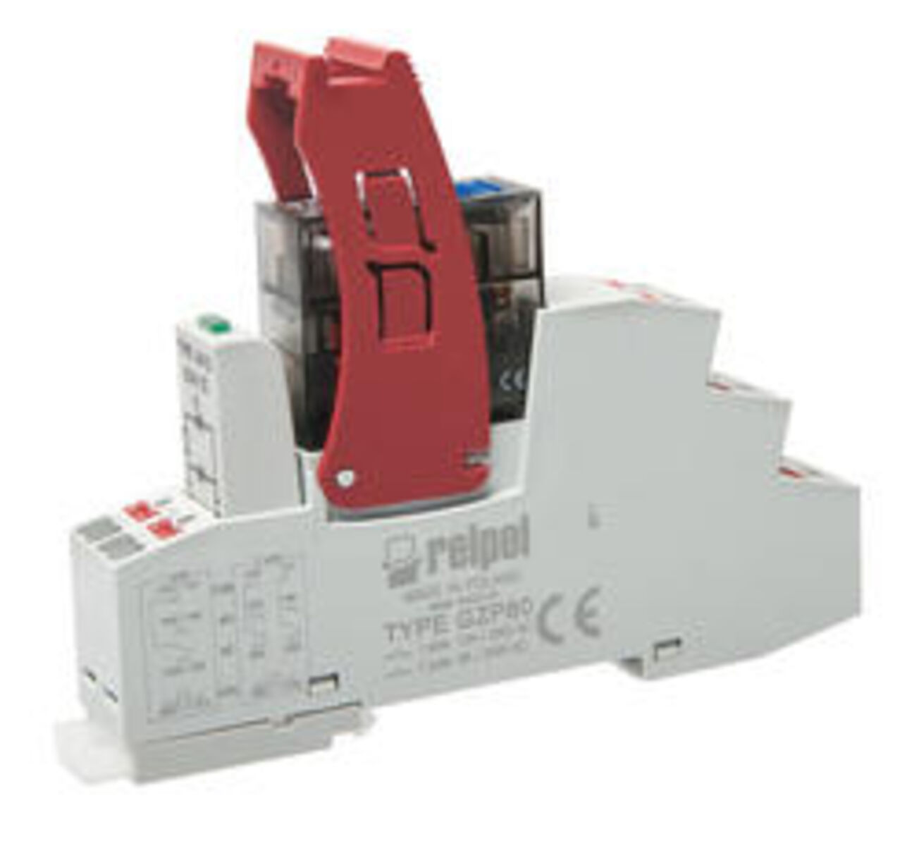 Push-in gränssnittsreläset: relä RMP85 (kontakter 1 CO, AgNi, märklast 16 A*, spolespänning 24 V DC), sockel GZP80 (grå, Push-in), modul M41G (version LD), klämma GZP80-0400 , (*Belastningar över 12A kräver överbryggande plintpar: 21 med 11, 24 med 14, 22 med 12 med 2-poliga byglar serie ZGZP-2)