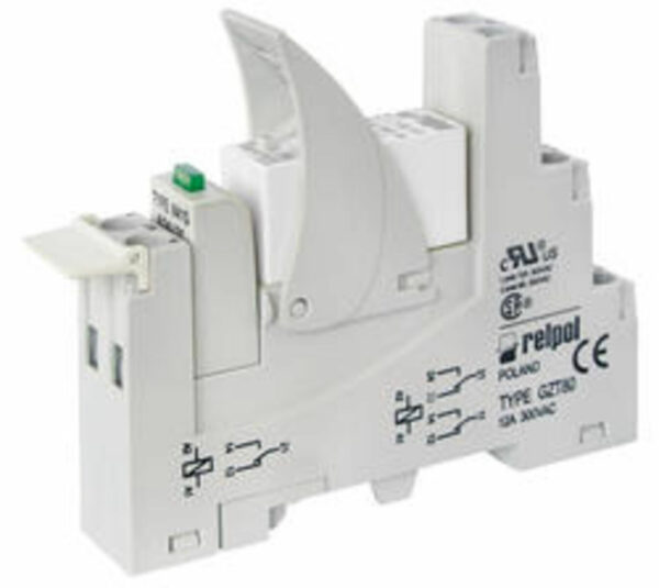 Reläer för järnvägsindustrin – gränssnitt PI85T-024DC-M41G-TS-3011-V0, 1 CO. Kontaktmaterial: AgSnO2. Spänningsspole 24 V DC. Märklast AC1 16 A / 250 V AC. Montering: montering på 35 mm skena. Kapslingsklass IP 20.